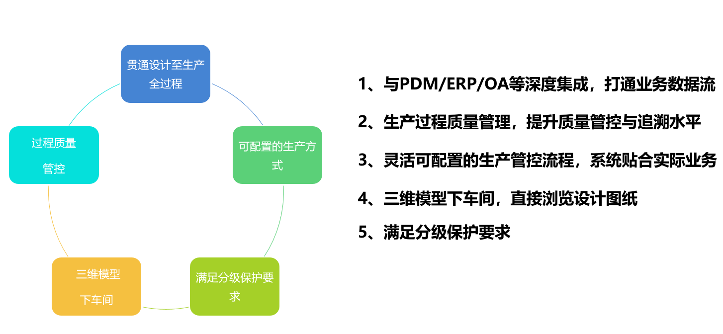 基于云平台应用的MES系统,将为制造企业提供灵活的应用服务租用,在制造资源虚拟化、业务流程标准化的基础上,给用户提供方便的业务流程定制化手段。QMES系统打通了制造企业的产品设计、生产计划、过程管控、质量管理、日常业务审批之间的数据通道,与企业的PDM、ERP、OA、报表中心等系统形成了一个有机整体,能有效提升企业协同能力、制造管控能力、质量管控能力以及决策支持能力。交付方式 : SAAS