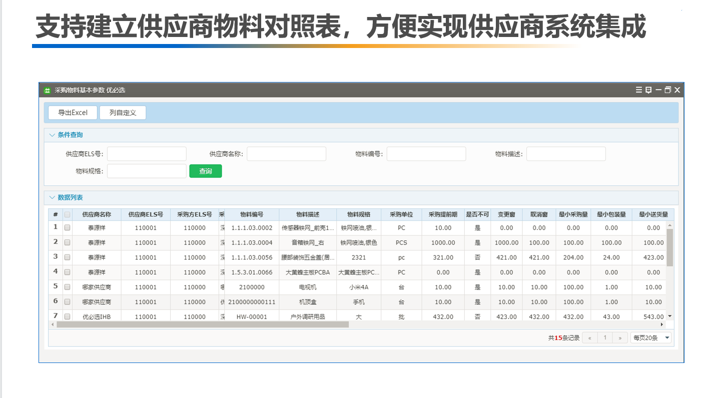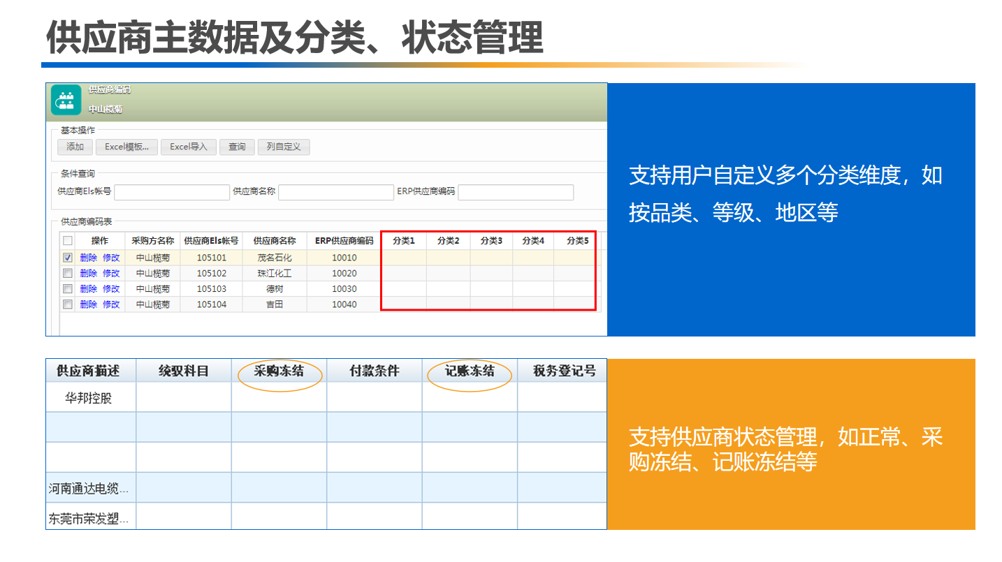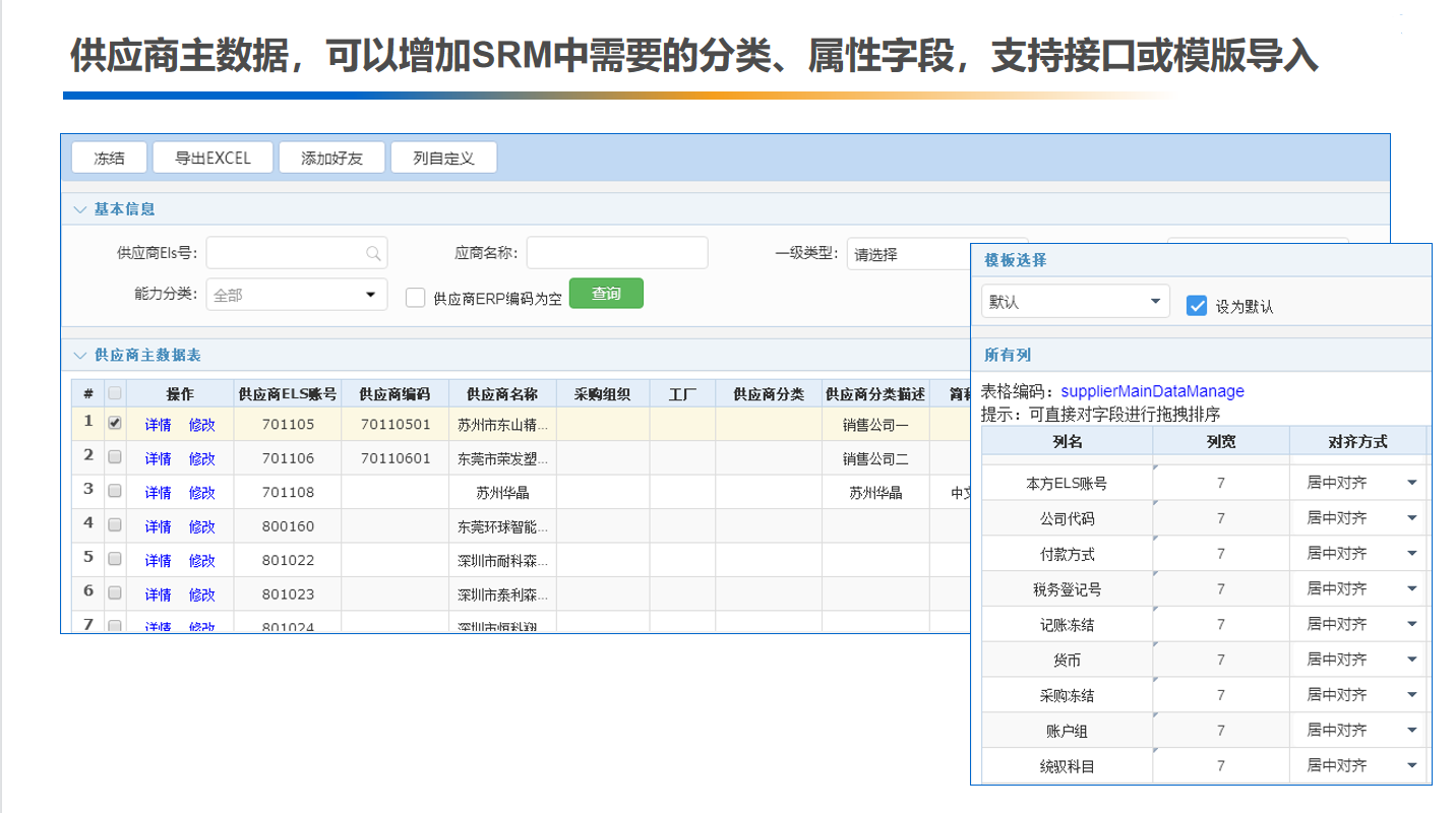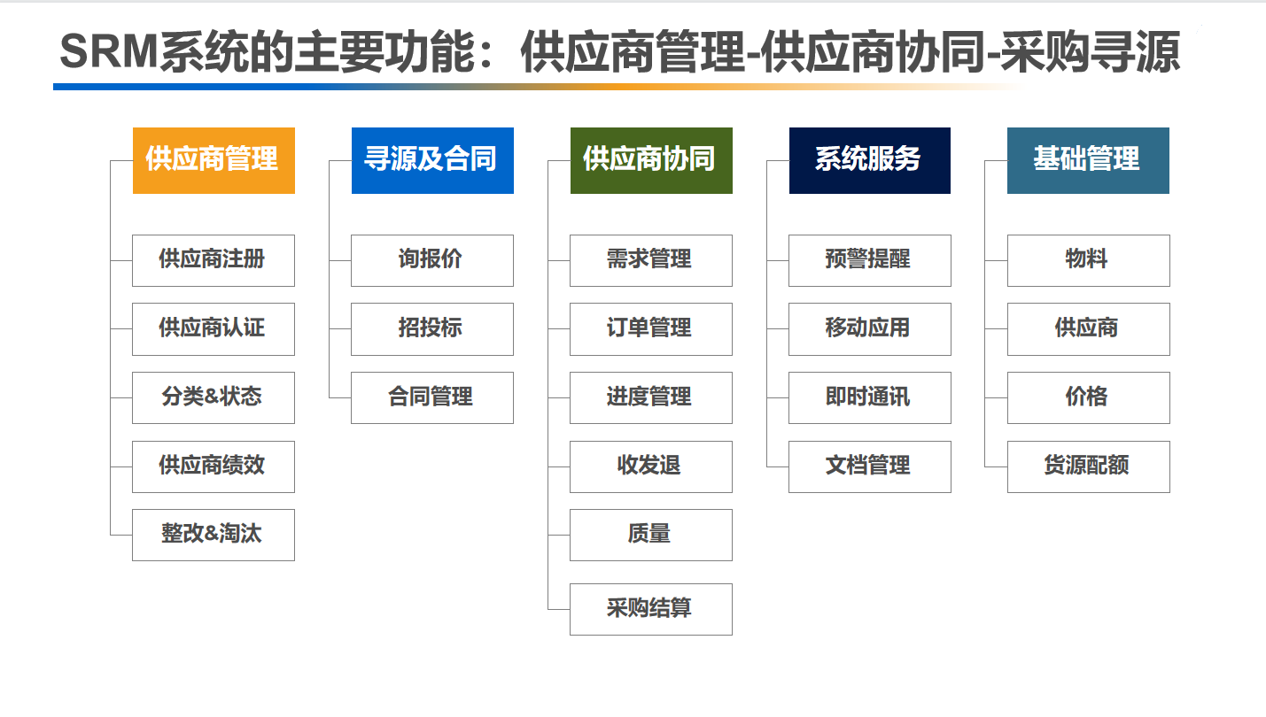 SRM产品广泛应用于供应商比较多、对供应商管理要求较高的企业,实现供应商全生命周期管理、采购订单管理、合同管理、采购计划管理、质量管理等功能,通过系统实现对供应商全生命周期管理、采购订单协同及内部采购作业规范化、标准化,提升采购部门业务效率。交付方式 : SAAS